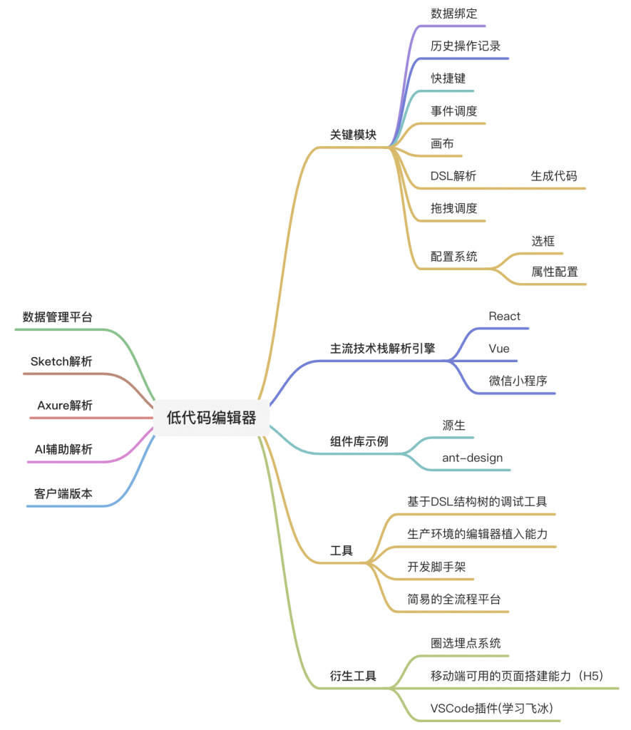 我想做的东西是一个以低(零)代码编辑器为中心辐射出的一套工具包。面对这个时间点的低代码发展情况,这个赛道已经是一块让个人难以耕耘的盐碱地了,而我想做的不是一个低代码的整体平台,而是平台中每一块的零件,为低代码平台的整体架构进行解构,对页面编辑器、debugTools、设计稿自动解析、PRD自动解析、数据层等等方面输出针对的工具包和思路。