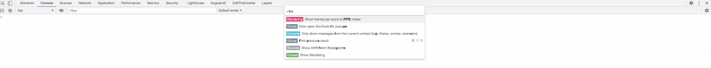 打开devTools,如果你是mac请按组合键 commend + shift + p (win系统自行翻译),然后再搜索框中输入fps,你会看到如下的状态。